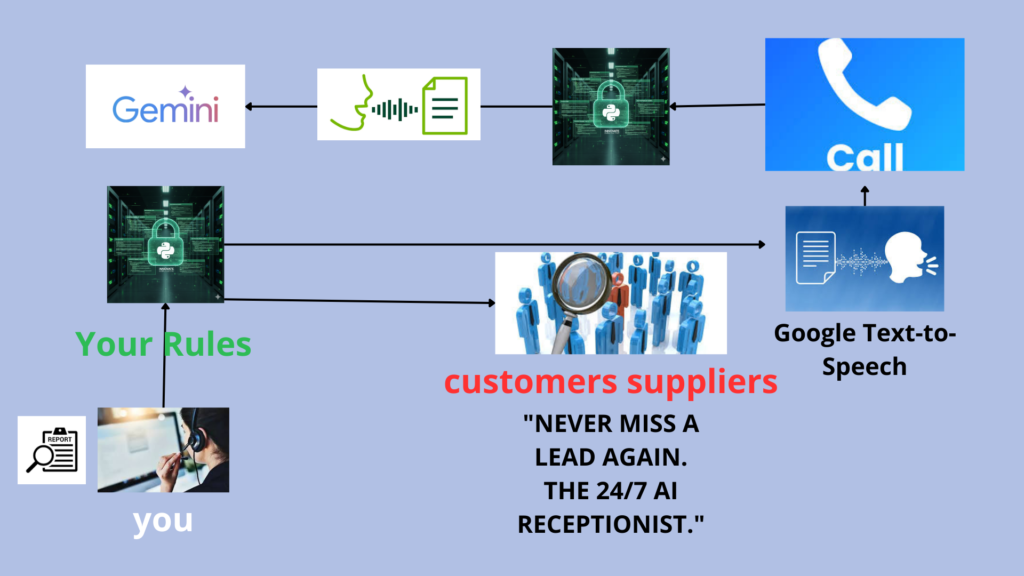 Sistemi di Auto-risposta TSS/STT per Sostituire i Centralini: Modernizza la gestione delle chiamate e delle richieste. I nostri sistemi avanzati di auto-risposta (Text-to-Speech/Speech-to-Text) basati su AI possono sostituire i tradizionali centralini, fornendo risposte immediate, assistenza H24 e indirizzando gli utenti in modo efficiente. Le tue comunicazioni saranno più rapide, efficienti e sempre disponibili, migliorando l’esperienza dei tuoi clienti e liberando risorse preziose per il tuo personale.