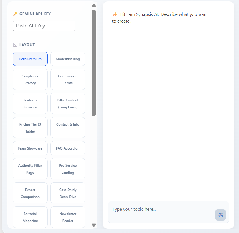Un contenuto eccezionale merita una presentazione impeccabile. SynapsisLab Ai Perfect SEO non si limita a generare testi ottimizzati; ti offre anche la flessibilità di scegliere tra diversi tipi di layout professionali per assicurare che le tue pagine siano visivamente accattivanti e coerenti con il tuo brand. Dopo la generazione del testo, un’innovativa finestra di anteprima ti permette di visualizzare esattamente come apparirà la tua pagina una volta pubblicata, completa di impaginazione. Questo ti dà il pieno controllo sul design e sull’esperienza utente, permettendoti di apportare modifiche in tempo reale e di perfezionare ogni dettaglio prima di andare online. Garantisci ai tuoi visitatori un’esperienza di navigazione fluida e intuitiva, che migliora non solo il loro coinvolgimento, ma anche i segnali utente positivi per i motori di ricerca.